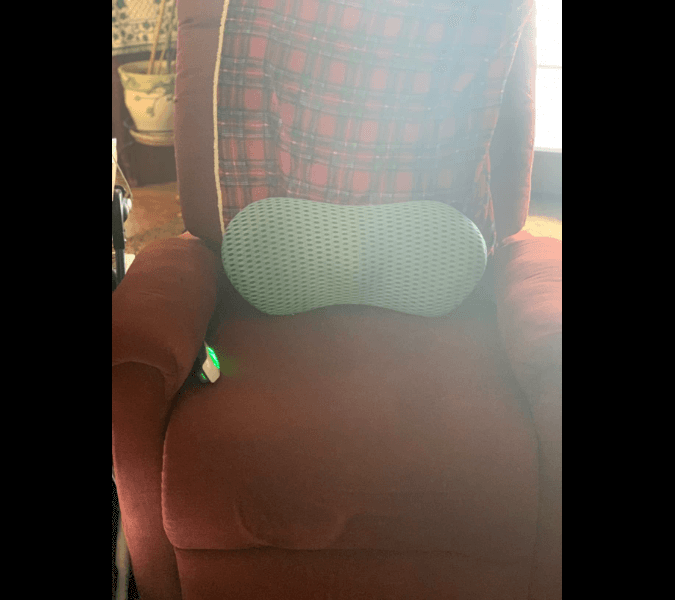 "Min man kände stor skillnad med denna kudden i alla stolar. Vi tar med det överallt eftersom den är så lätt att vika ihop och lägga tillbaka i påsen. Han kände lindring från första dagen. Är så glad att jag köpte det till honom!"